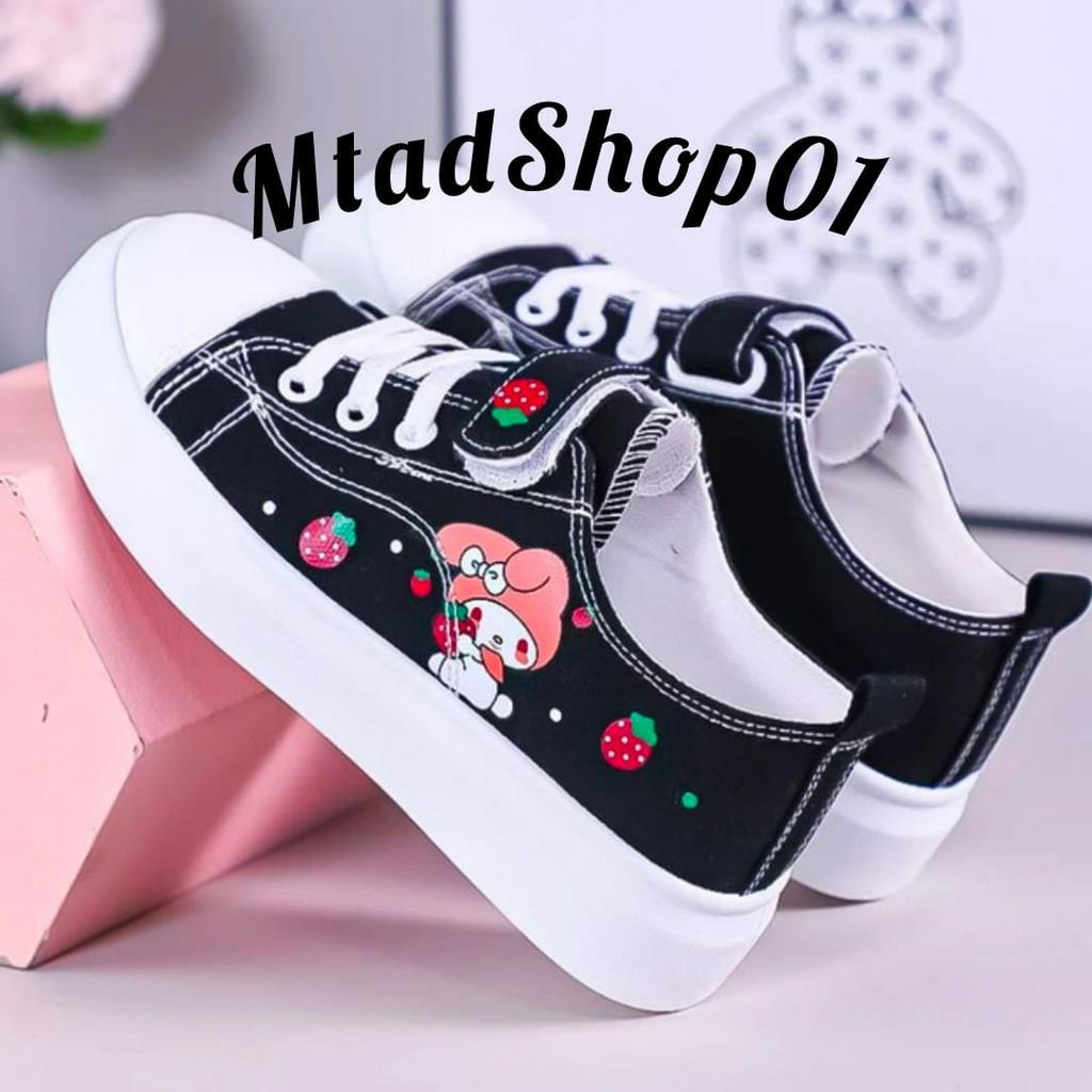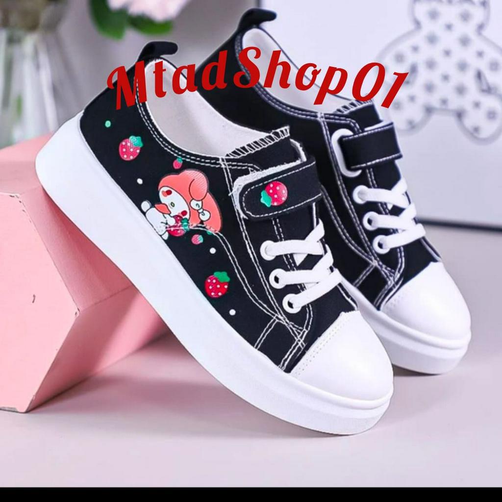Sepatu Wanita Sneakers Anak Dan Dewasa Perempuan Motif Kanvas My Melody Hitam Trendy