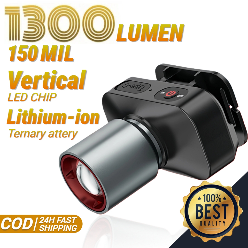 [ + 10-Year Warranty] Headlamp LED 150W 1300 Lumens – Senter Kepala Fokus & Zoom, 3 Mode, RechargePro USB-C, IP68 Anti A