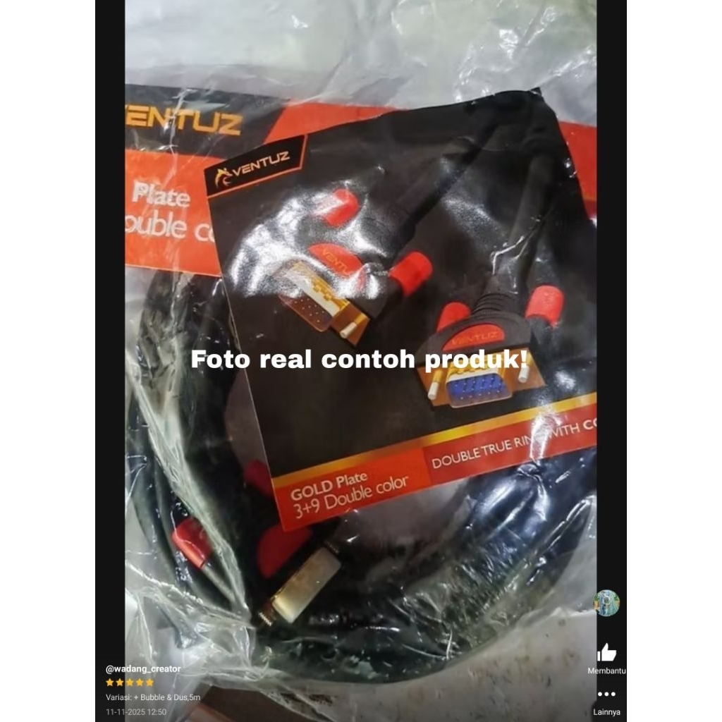 VENTUZ Kabel VGA to VGA Plated Double Ring Cooper 3+9 – High Quality VGA Cable Monitor PC Laptop Proyektor HDTV