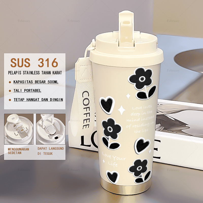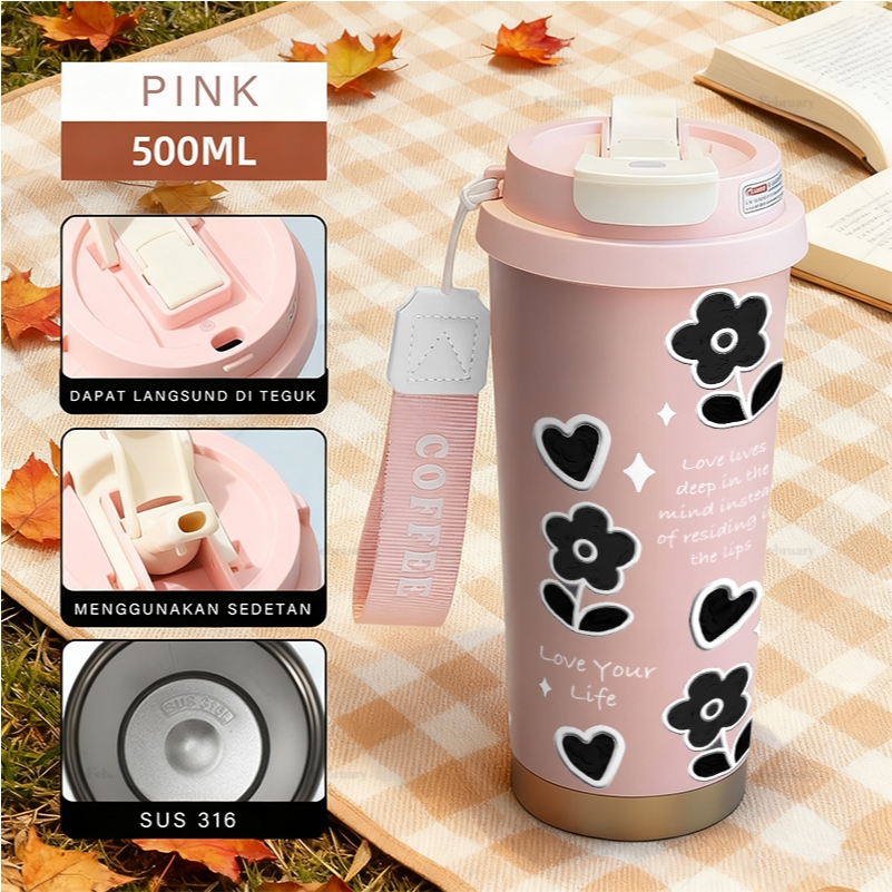 Tumbler stainless 316 sus 500ML tumbler aesthetic viral lucu/cangkir kopi/tumbler tahan panas dingin/botol minum/tumbler sedotan/tambler botol minum/LLB361SHHH