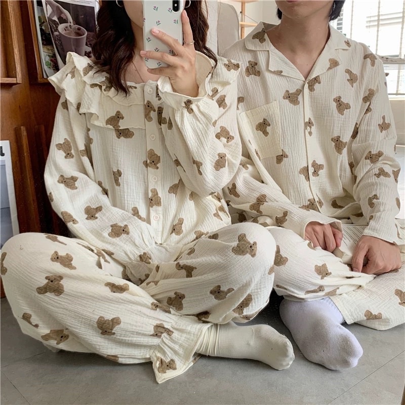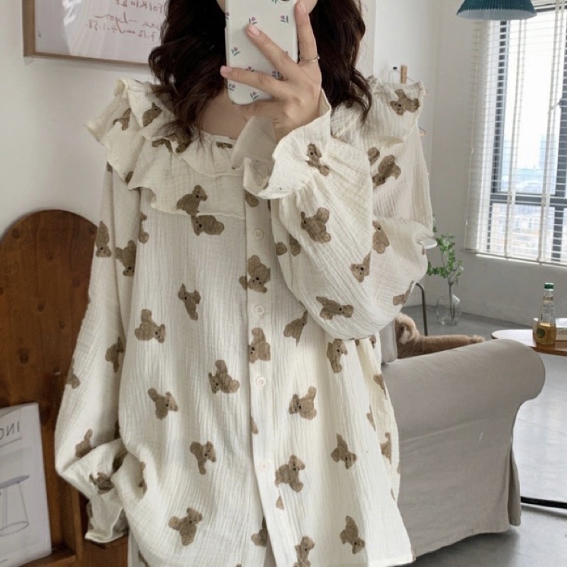 [ready stock] teddy bear korean pajama | baju tidur set piyama motif boneka ber lucu gaya korea