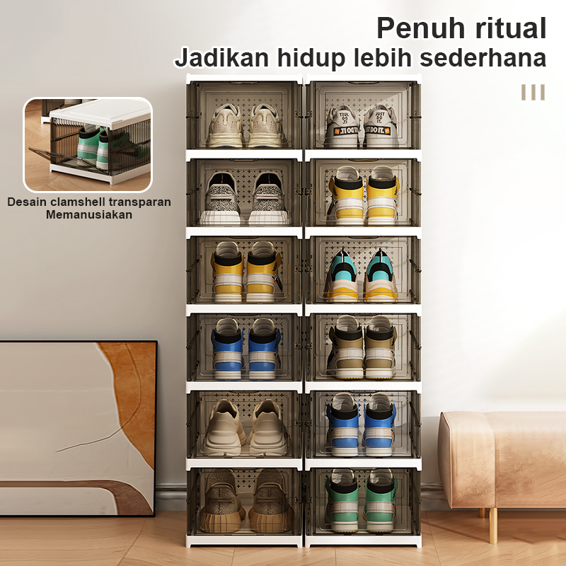 Awesome Box Kotak Sepatu Lipat 3/6/8/9/11 Rak Sepatu Lipat KotakSepatu Transparan Penyimpanan Sepatu
