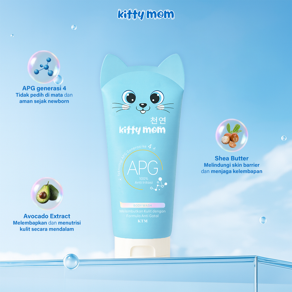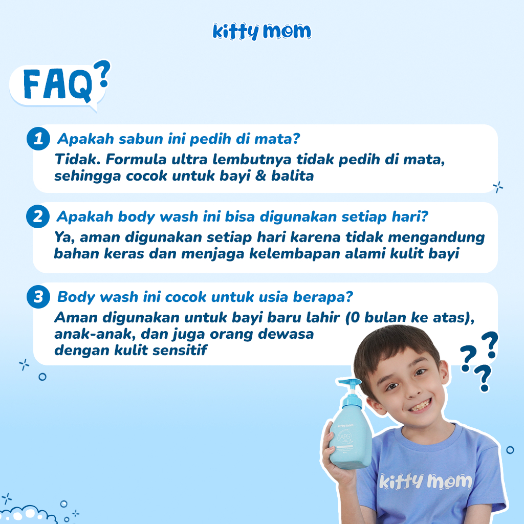 Kitty Mom Kids Body Wash | Baby Bath Cleanser Shower| Sabun Bayi Non SLS & Paraben | Sabun Mandi Anak Melembabkan & Anti