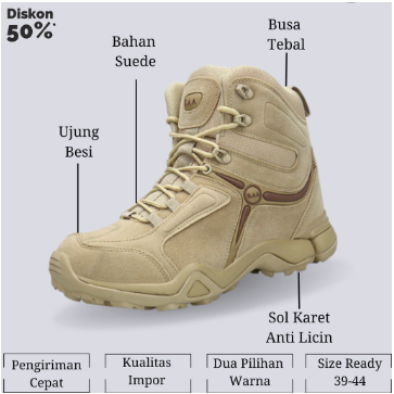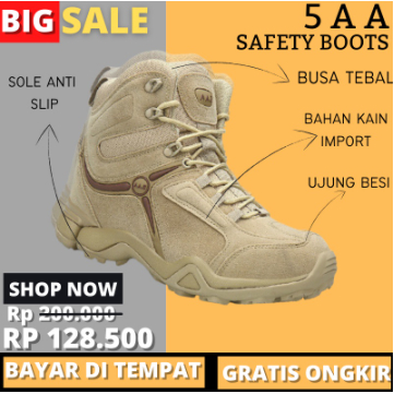 Delta 5AA Sepatu Boots Safety Tactical Satpol pp Polisi TNI Pdl PDH Hiking ung Pria Original Kerja Lapangan Kulit