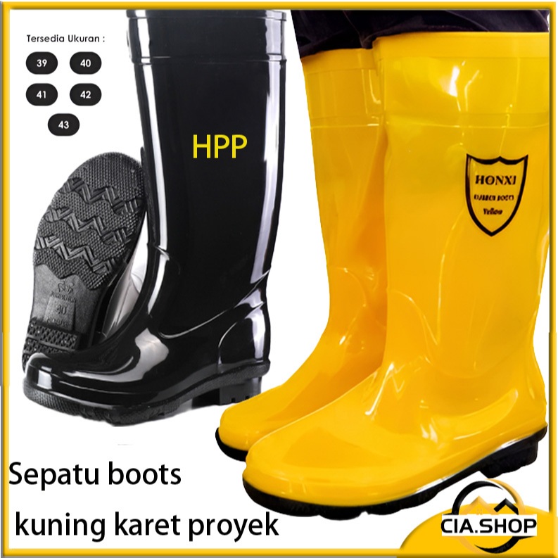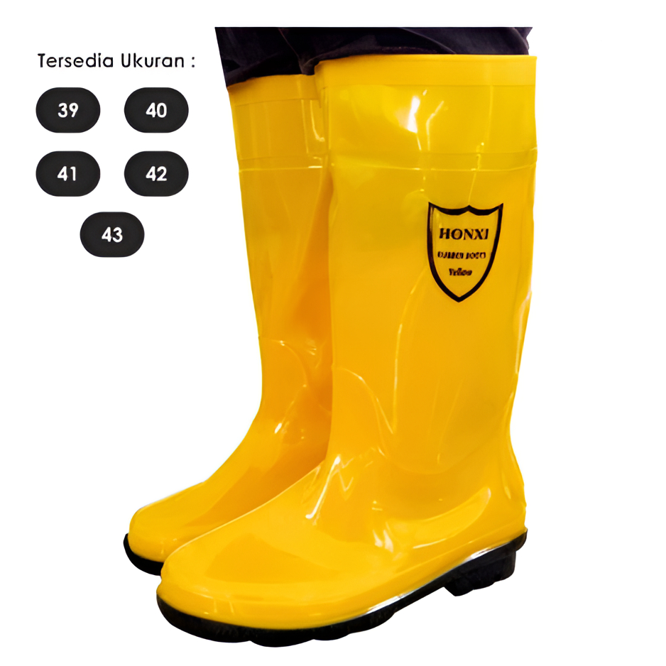 Sepatu boots kuning karet proyek honxi premium / Sepatu Proyek / Sepatu Boot Karet / Safety Boot HPP