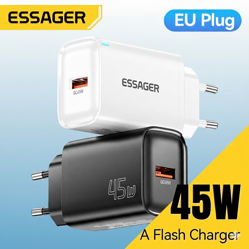 [Star] Essager Charger USB-A 45W Super VOOC Adaptor Fast Charging Kompatibel OP'PO Vi'vo