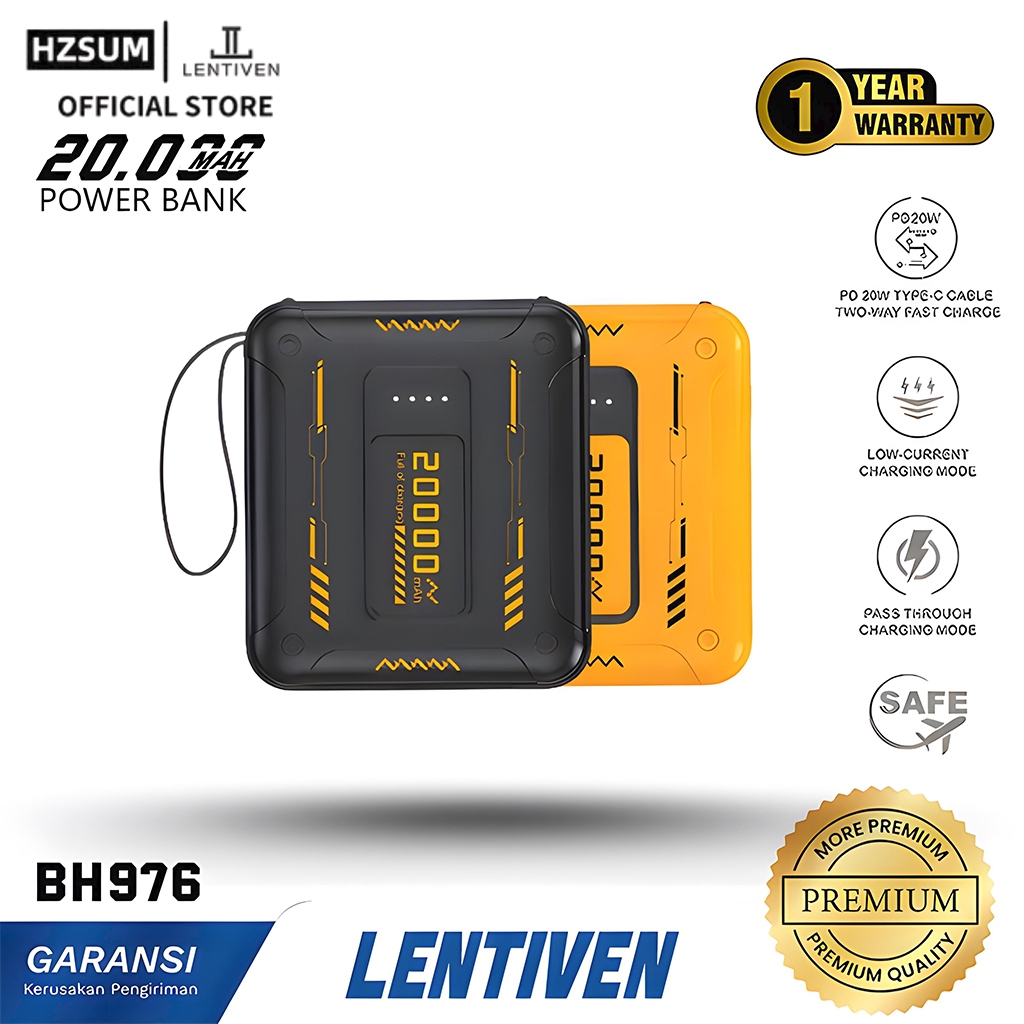 HZSUM LENTIVEN Powerbank 20000 mAh Fast Charging Led Senter Display Mini Size With 4 Cable Data