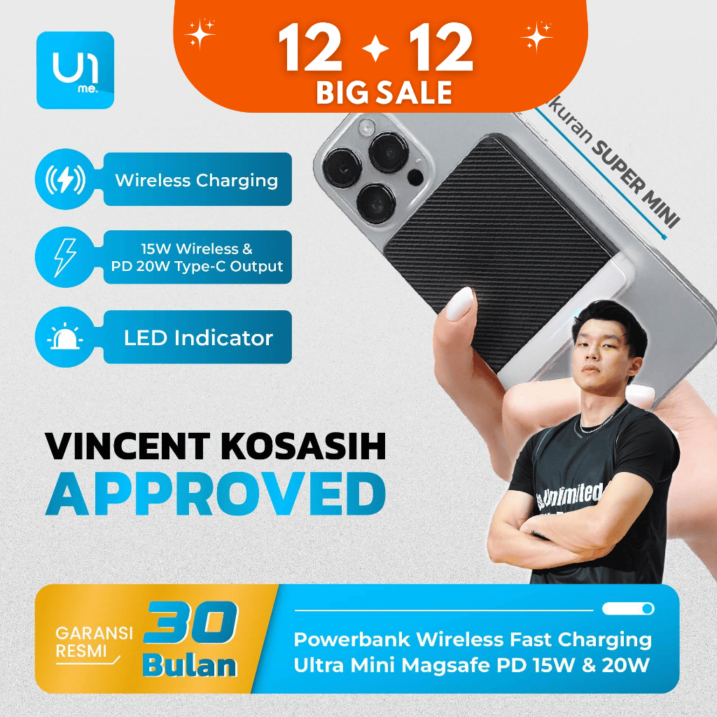 [VINCENT KOSASIH APPROVED] U1me. Powerbank Pocket Mini Magsafe 5000 mAh PD 20W Fast Charging Type C Powerbank Wireless U