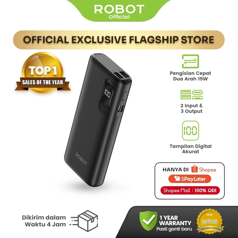 ROBOT Powerbank Fast Charging 10000mAh 15W with LED Display Type Input 3 Output Power bank RT102 Original - Garansi 1 Ta
