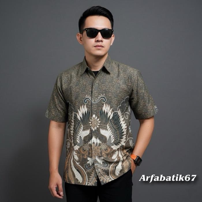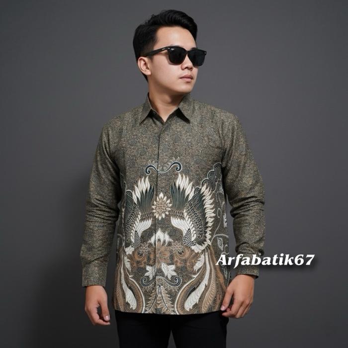 HIJAU EMERALD CREAM motif KASMARAN Kemeja batik pria premium lengan panjang katun prima premium lapis furing hero