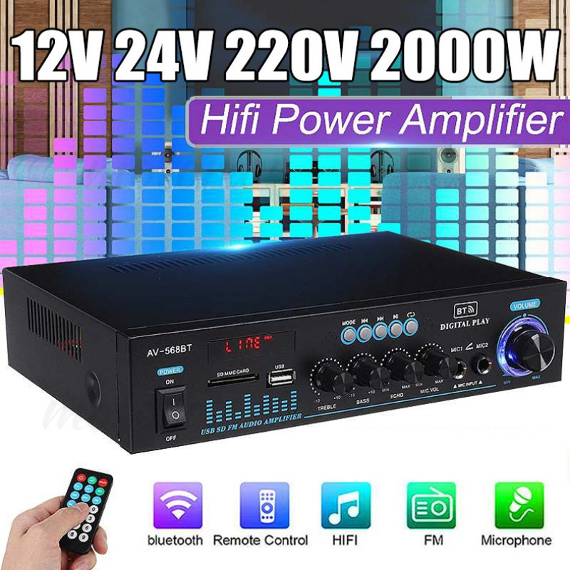 【】Power Amplifier Subwoofer Bluetooth AV-668BT Amplifier Karaoke Amplifier Board Audio FM USB SD Power Stereo Bass Audio