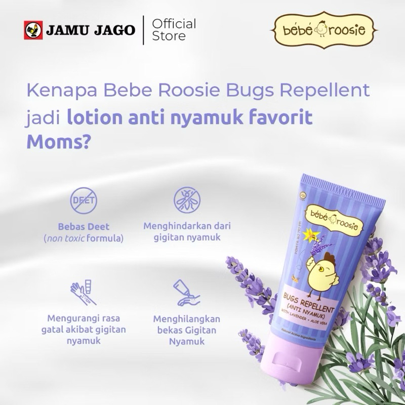 BEBE ROOSIE Bugs Repellent 60gr Lotion Bayi Anti Nyamuk Baby Kulit Gatal Skin Serangga Alami Natural Anak Lavender Aloev