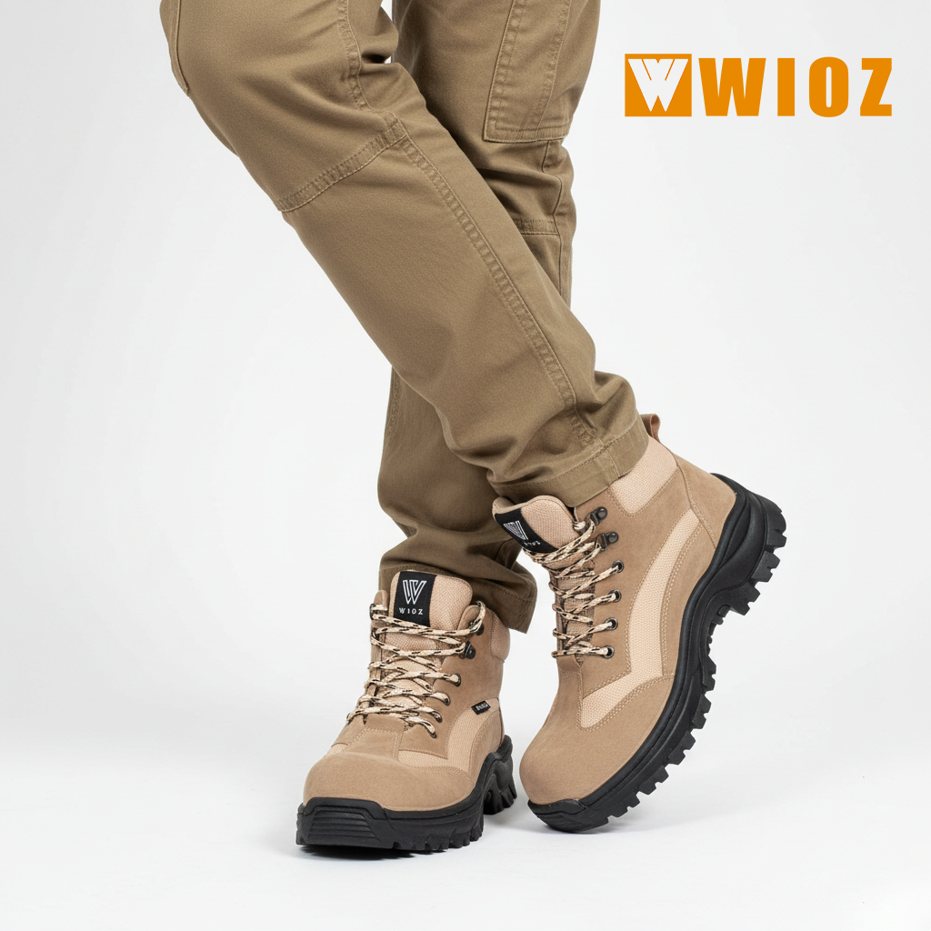 Wioz Fujiyama Sepatu Safety Ujung Besi Pria Wanita Boots Hiking ung Outdoor Motor Touring Krem