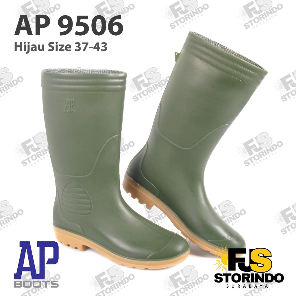 Sepatu Boot Tinggi AP 9506 Hijau APBoots Karet Lokal Anti Air & Slip Lentur Perkebunan Surabaya Jawa Timur Jatim