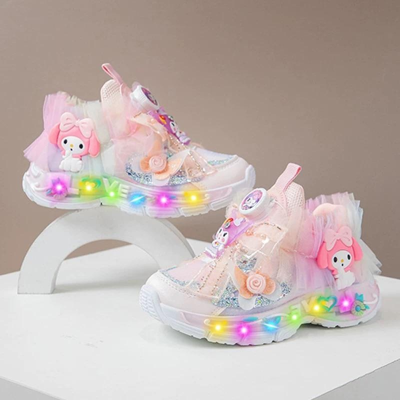 (LOLI-JKT) SP- 892 SEPATU LED ANAK CEWEK MELODY TILE RAINBOW PITA KUROMI MANIK TALI PUTAR SIZE 23-36