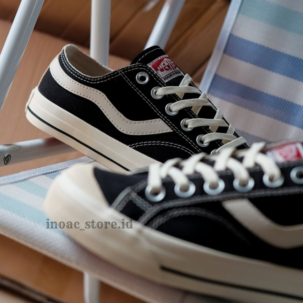 (Bonus Kaos Kaki)Ventela Public Low Hitam Putih - Sepatu Anak Sekolah SD & SMP Unisex Tahan Lama Bahan Kanvas