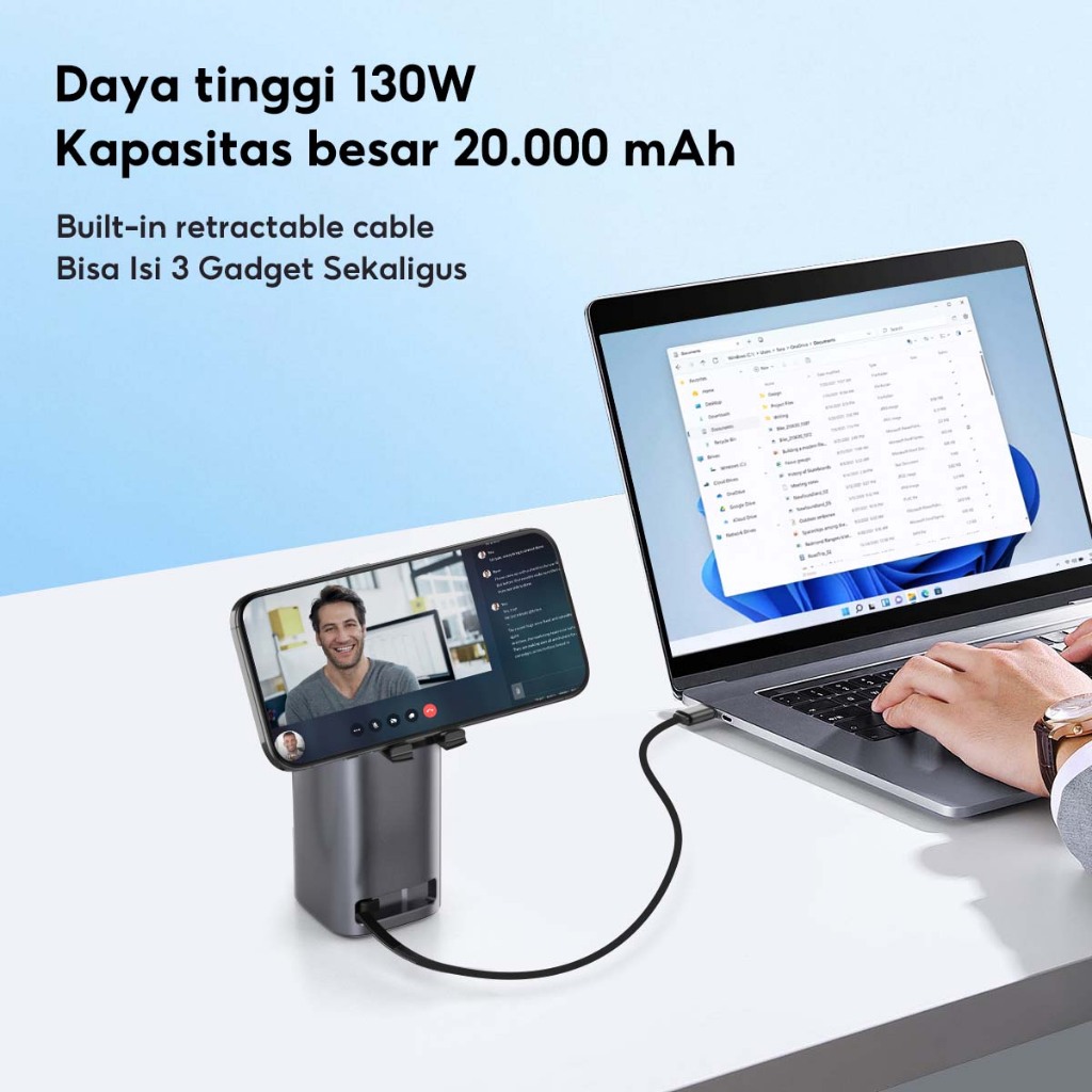 [Tersertifikasi CCC] VINKO V200 Laptop Power Bank 20000mAh 130W Fast Charging bawa type C Cable dan dudukan ponsel Retr