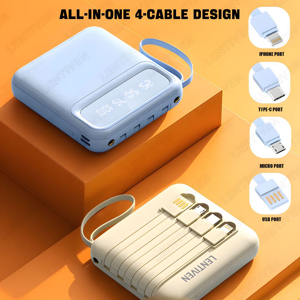 LENTIVEN PowerBank 20000mAh Mini With 3 Kabel Usb Fast Charging LED Senter Display