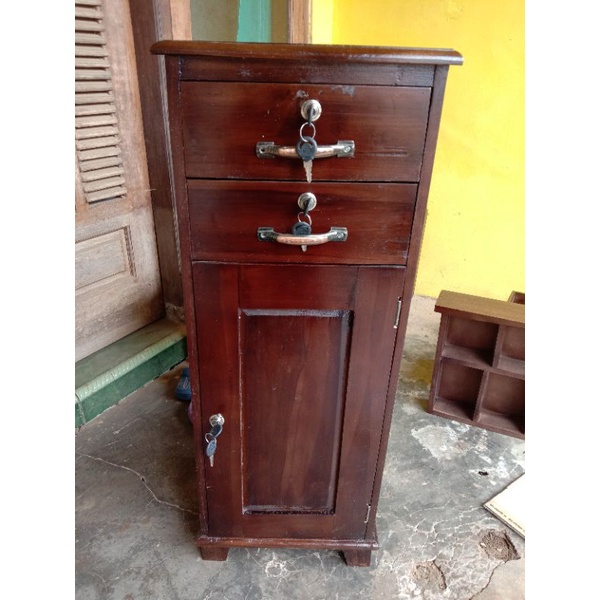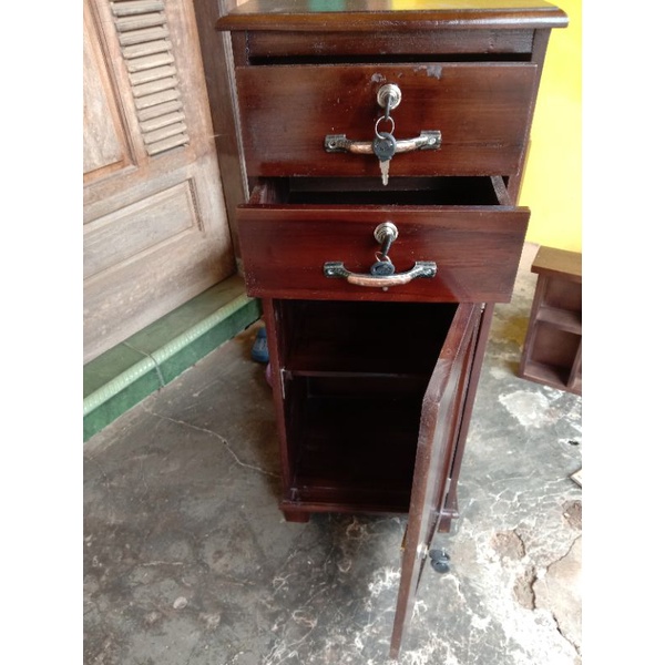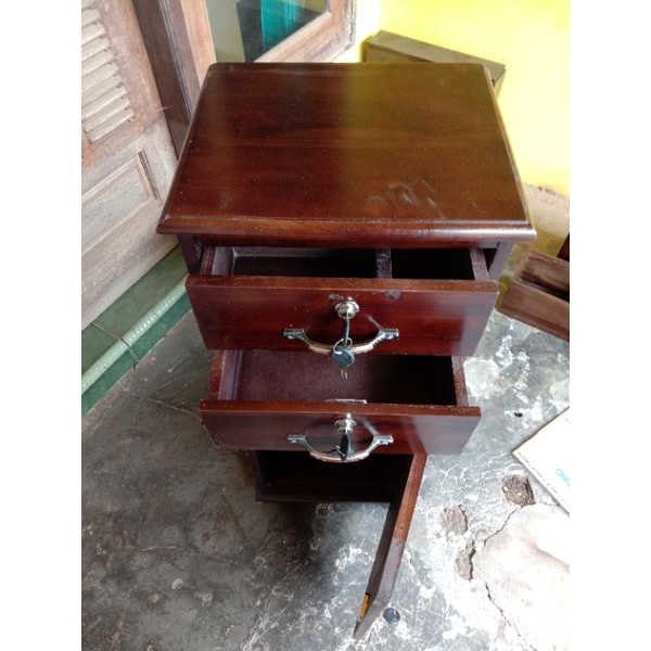 Nakas Jati Asli Dengan Dua Laci Finishing Gloss