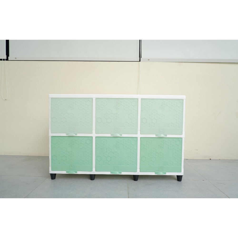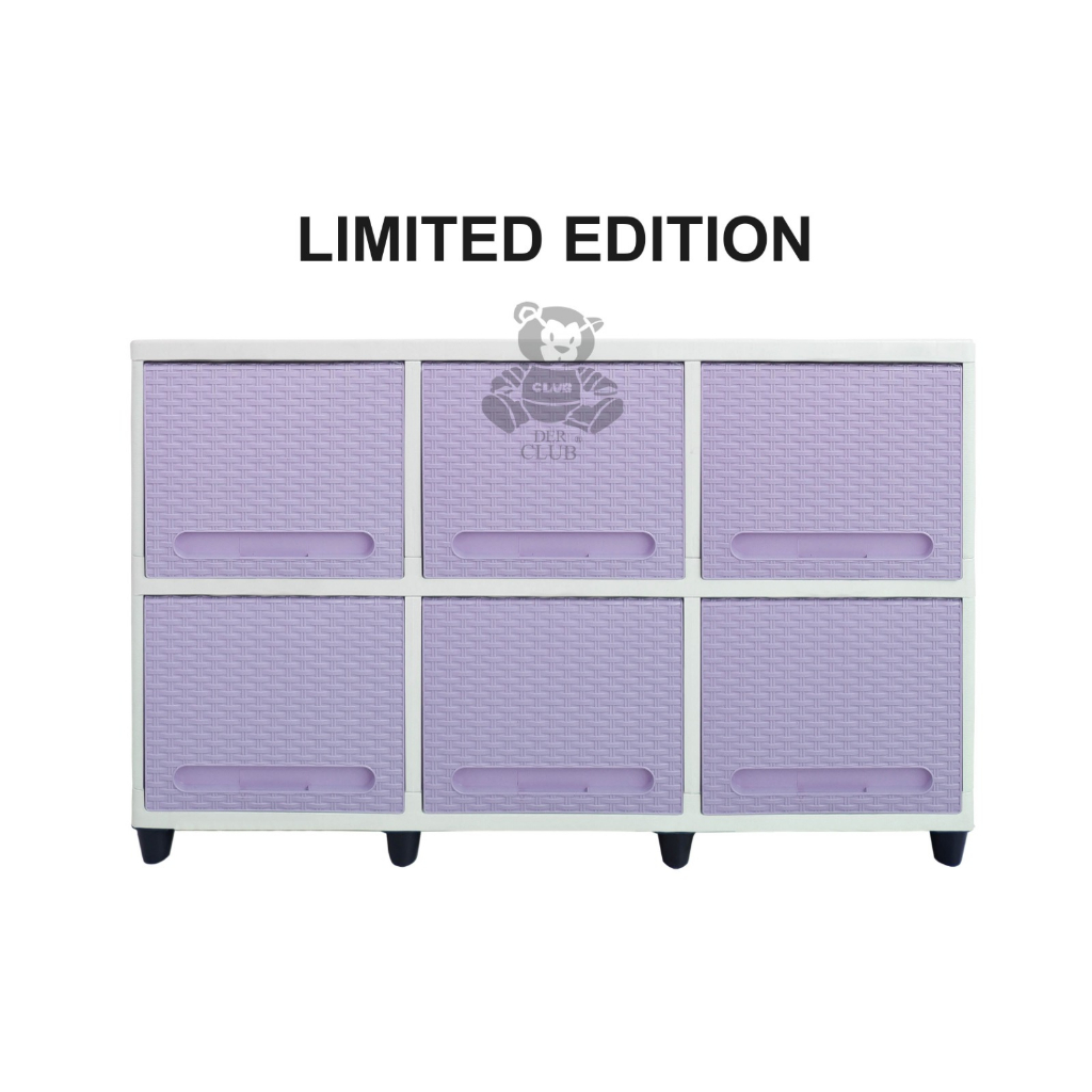 CLUB LEMARI PLASTIK TRIPLE FLIP SUSUN 2 MEJA TV MINIMALIS 6 PINTU LACI PINK PUTIH UNGU
