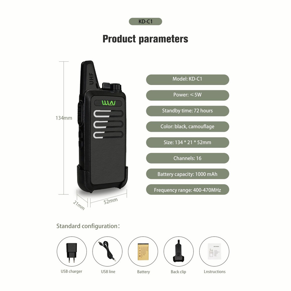 HT WLN C1 UHF Handy Talky TWO WAY RADIO BLACK walkie talkie 2 UNIT