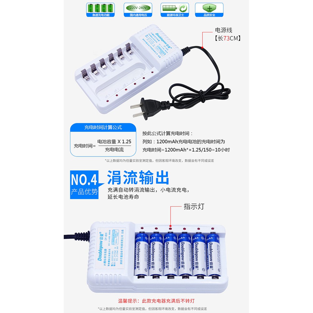 DOUBLEW Charger Baterai 6 for AA/AAA with 6 PCS AA Battery 1200mAh - DP-B06
