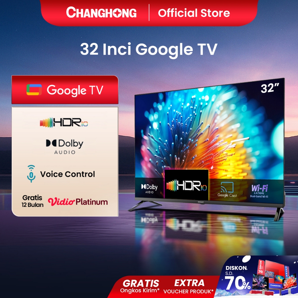 BUNDLING BRACKET Changhong Smart TV L32M91 Google 32 inch Dolby Audio Google Play Netflix Youtube Bluetooth USB Google Assistant Smart TV Digital TV Free Vidio L32M91 -Smart Android G7N | 32G7N 43G7N