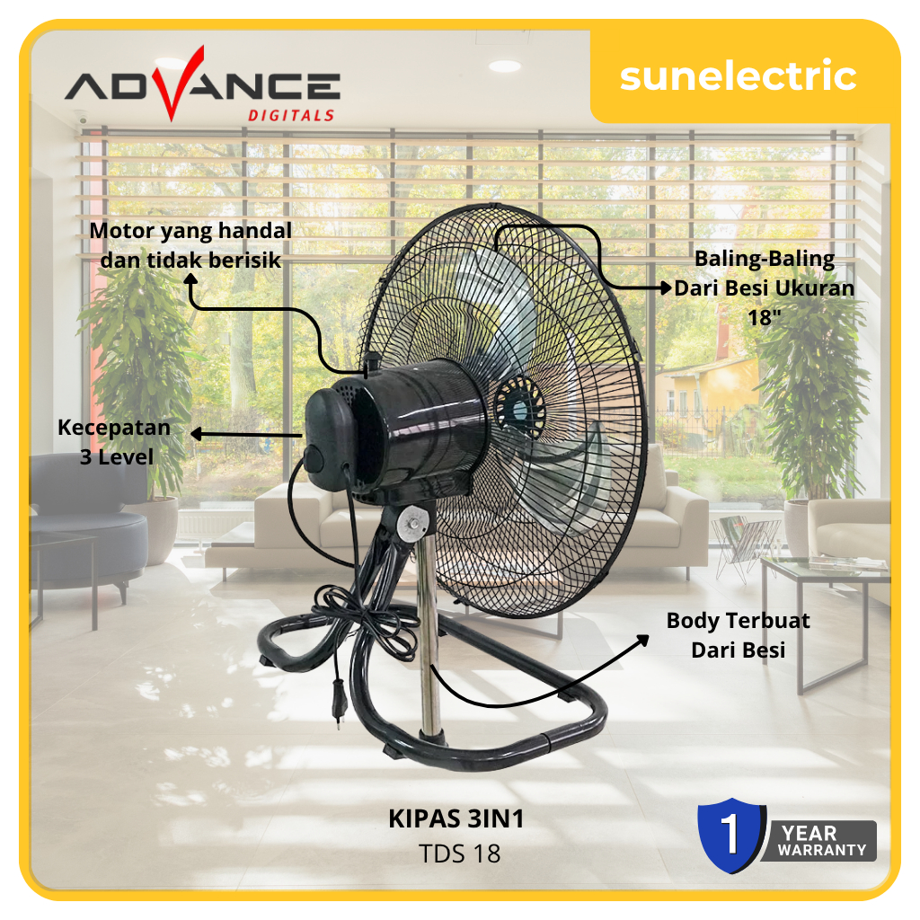 Advance TDS-18 Kipas Angin 3in1 18 Inch Berdiri Dinding Lantai Baling Besi Hitam