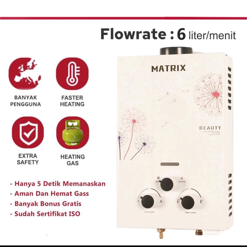 Water Heater Gas Finito Matrix LED/Tempered