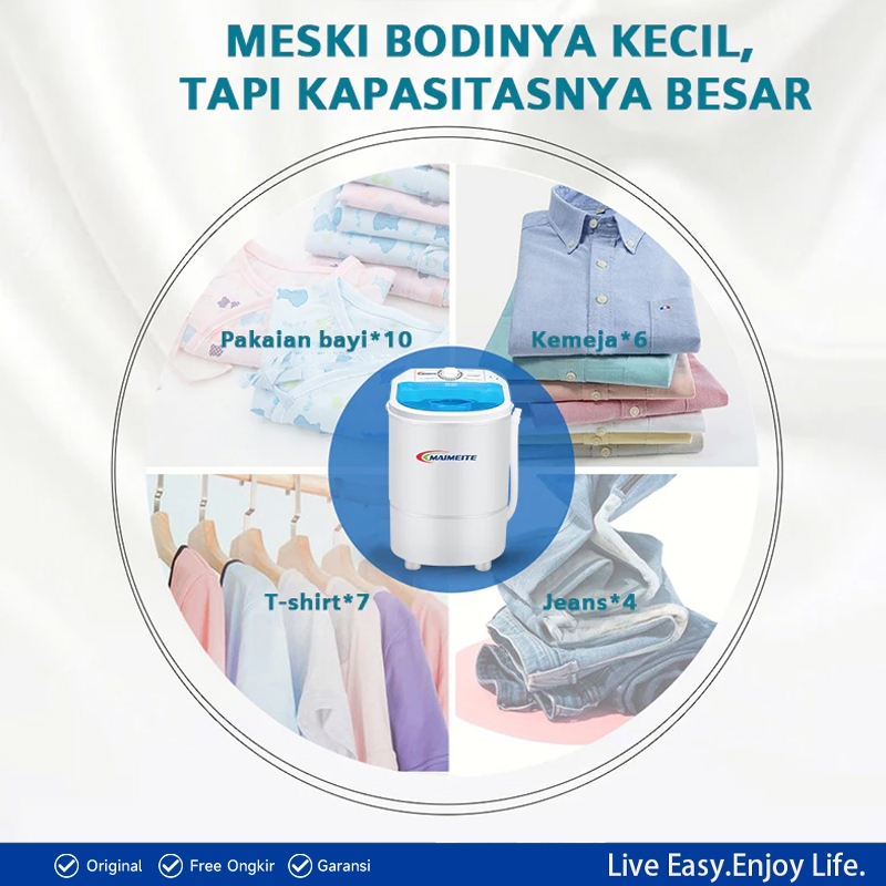 MAIMEITE 4.5KG Mini Mesin Cuci Washing Machine rtable Mini Hemet Energi