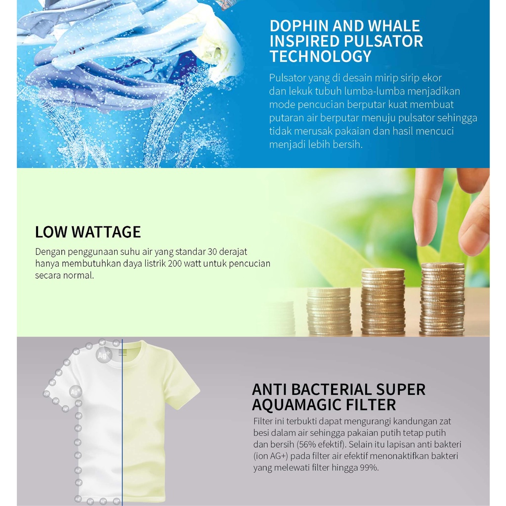 Sharp ES-T1090 Mesin Cuci Twin Tub Blue