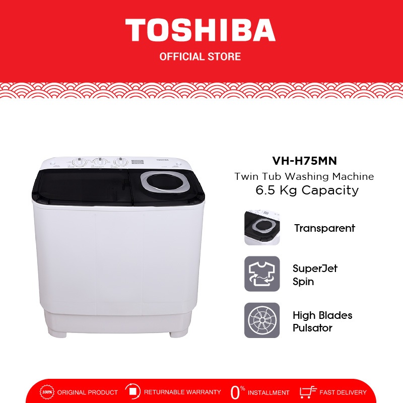 TOSHIBA Mesin Cuci Dua Tabung 6.5kg Model VH-H75MN Twin tub - Dilengk dengan Super Jet Spin
