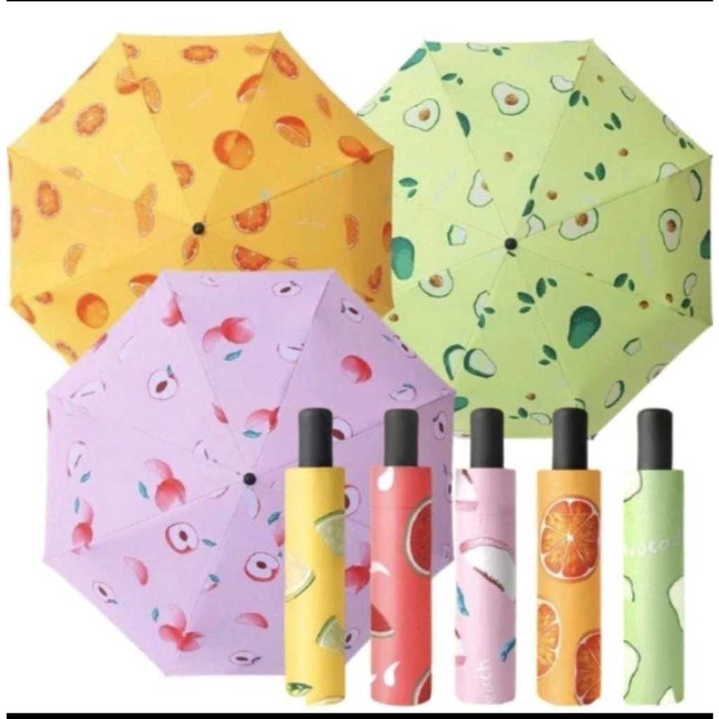 Payung Lipat Motif Buah Semangka Lemon Alpukat Jeruk Buah Peach Anti Sinar UV Protection