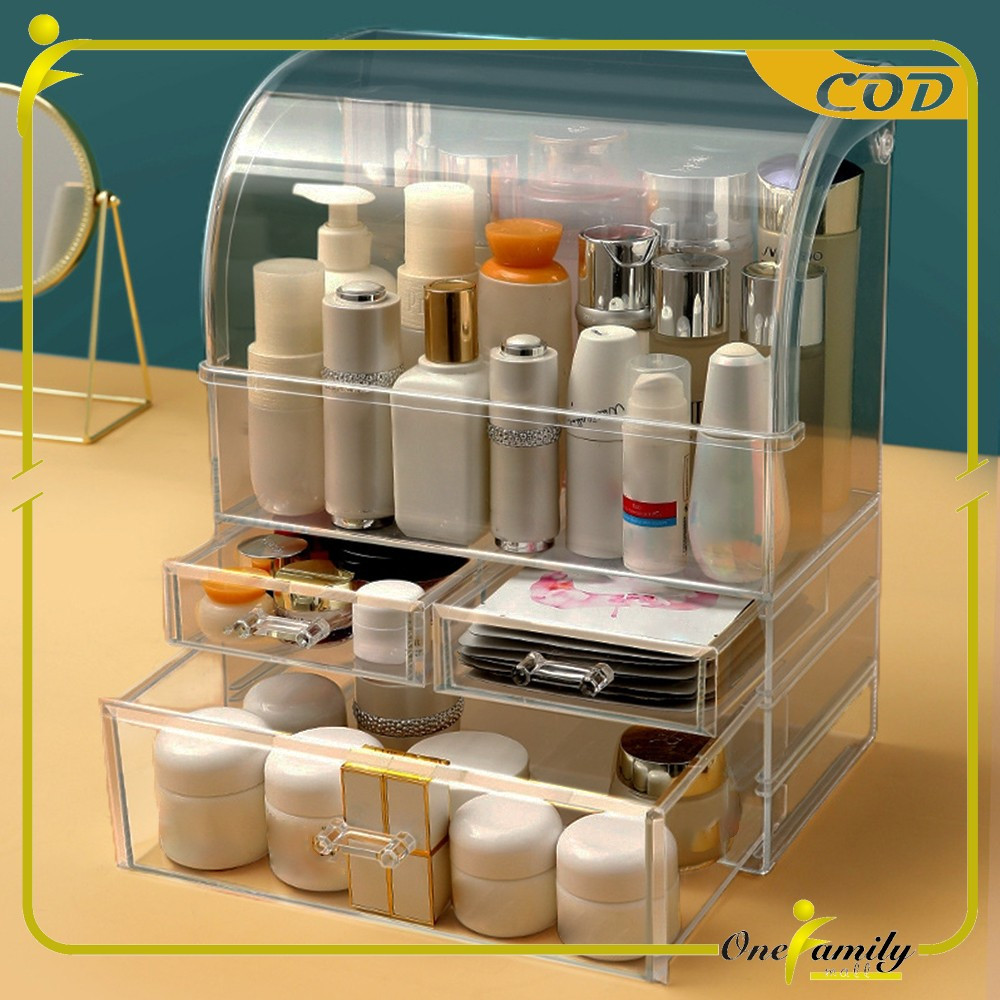 ONE-K132 Rak Kosmetik Dengan Laci Anti Debu Tempat Make Up Skincare Rak Akrilik Multifungsi / Tempat Penyimpanan Dengan Tutup Acrylic Storage Organizer Drawer Cosmetic