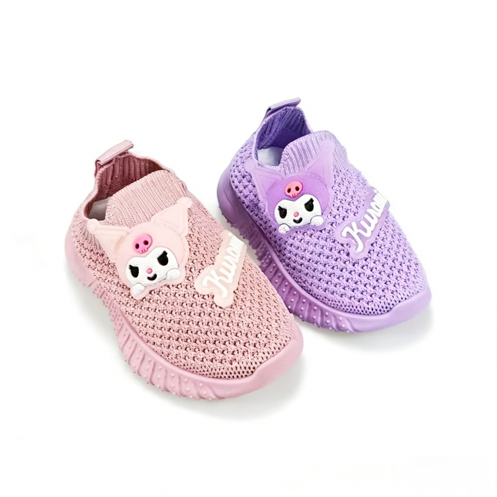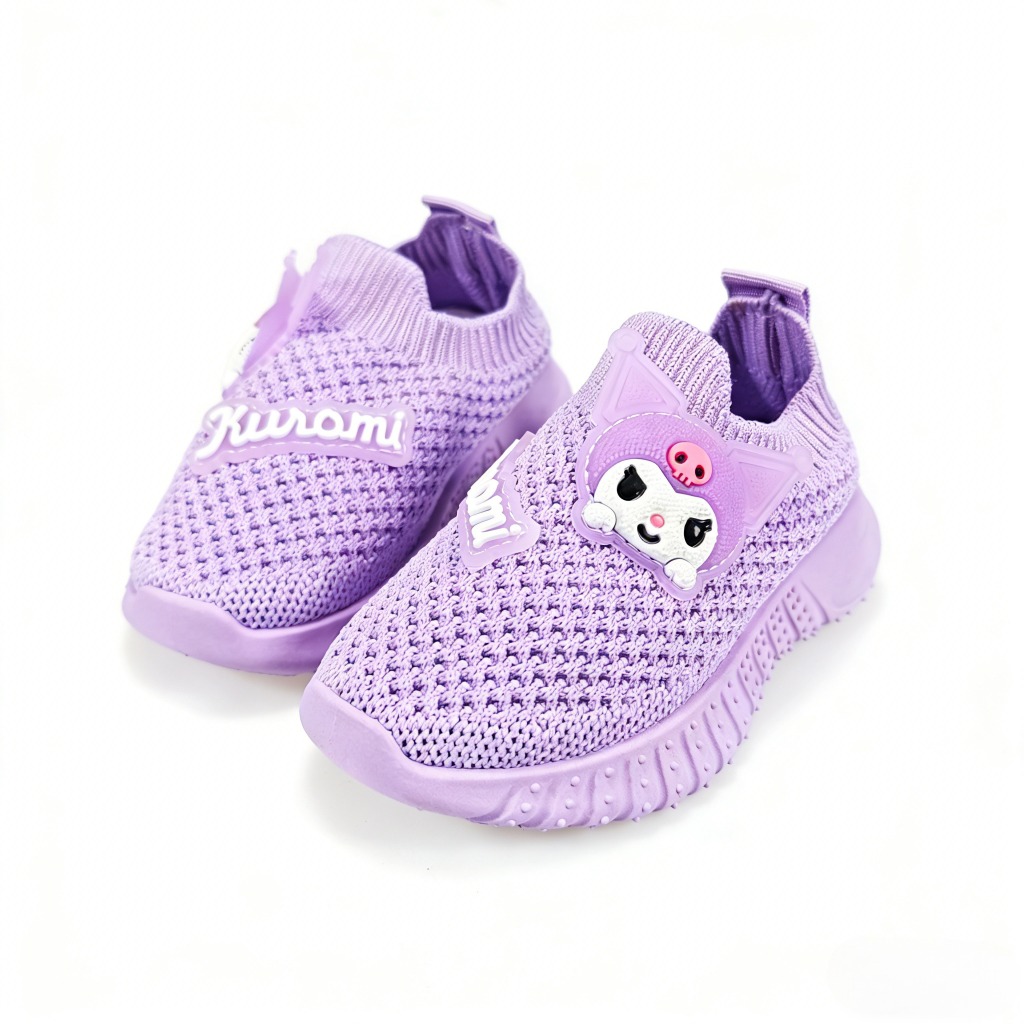 Sepatu kets fashion Kuromi untuk anak perempuan warna pink dan ungu, model slip-on, anti selip, dan ringan untuk dipakai