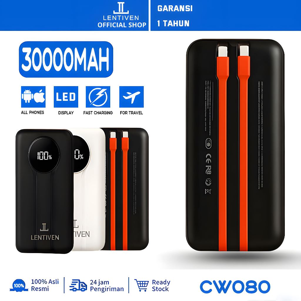 LENTIVEN 10000mAh Powerbank Mini Fast Charging 1 KABEL Type C For Iphone/Android CW080