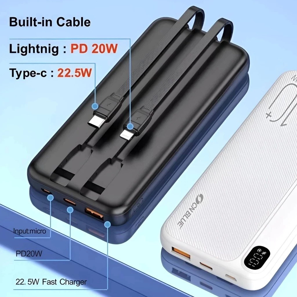 OCEANBLUE Powerbank 10000 mAh A157 Kabel Built in Type C Micro Iphone Lightning