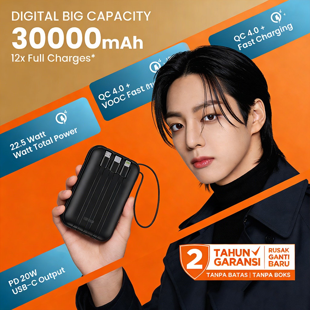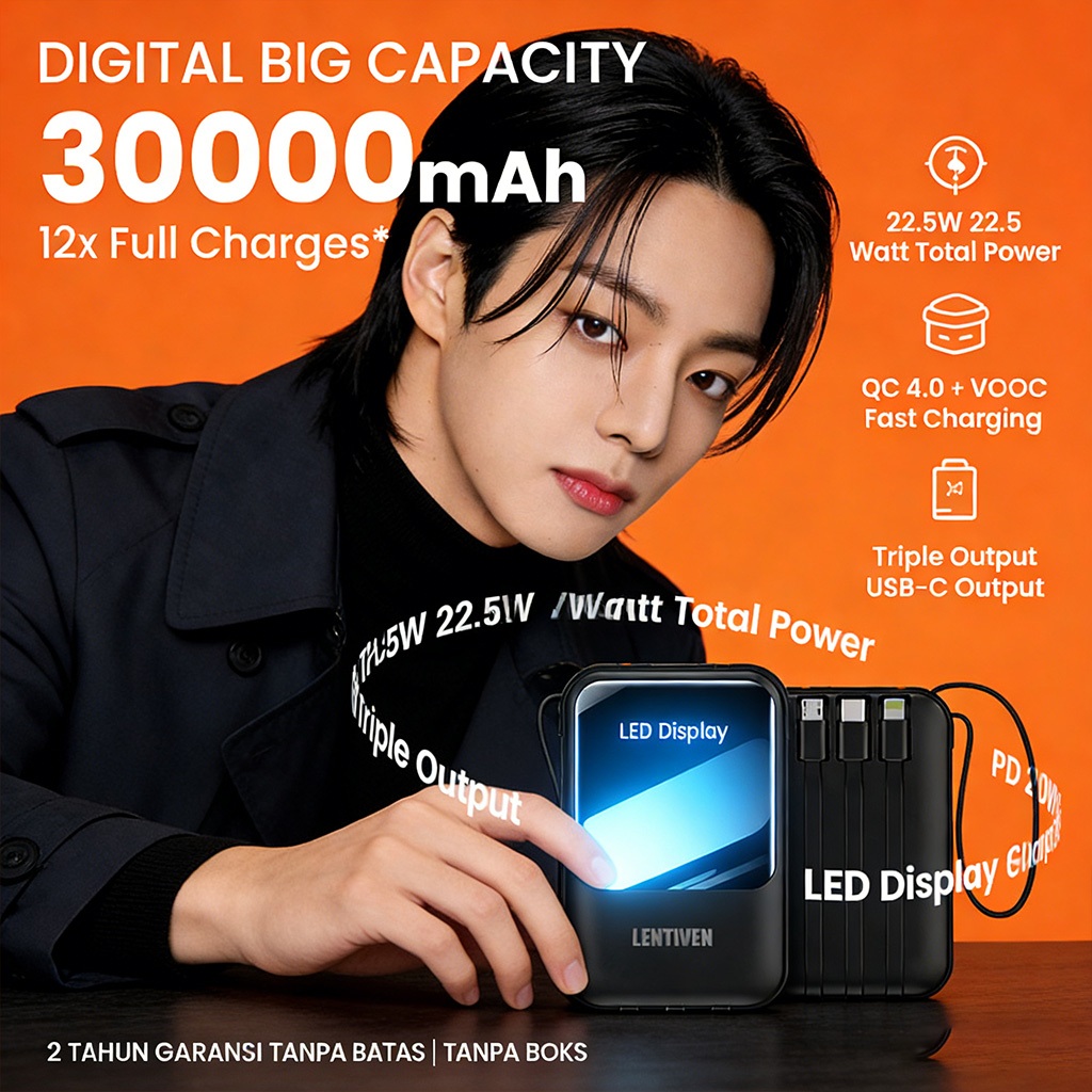 LENTIVEN POWERBANK 30000 mAh FAST CHARGING USB 3,0 Pengisian Daya
