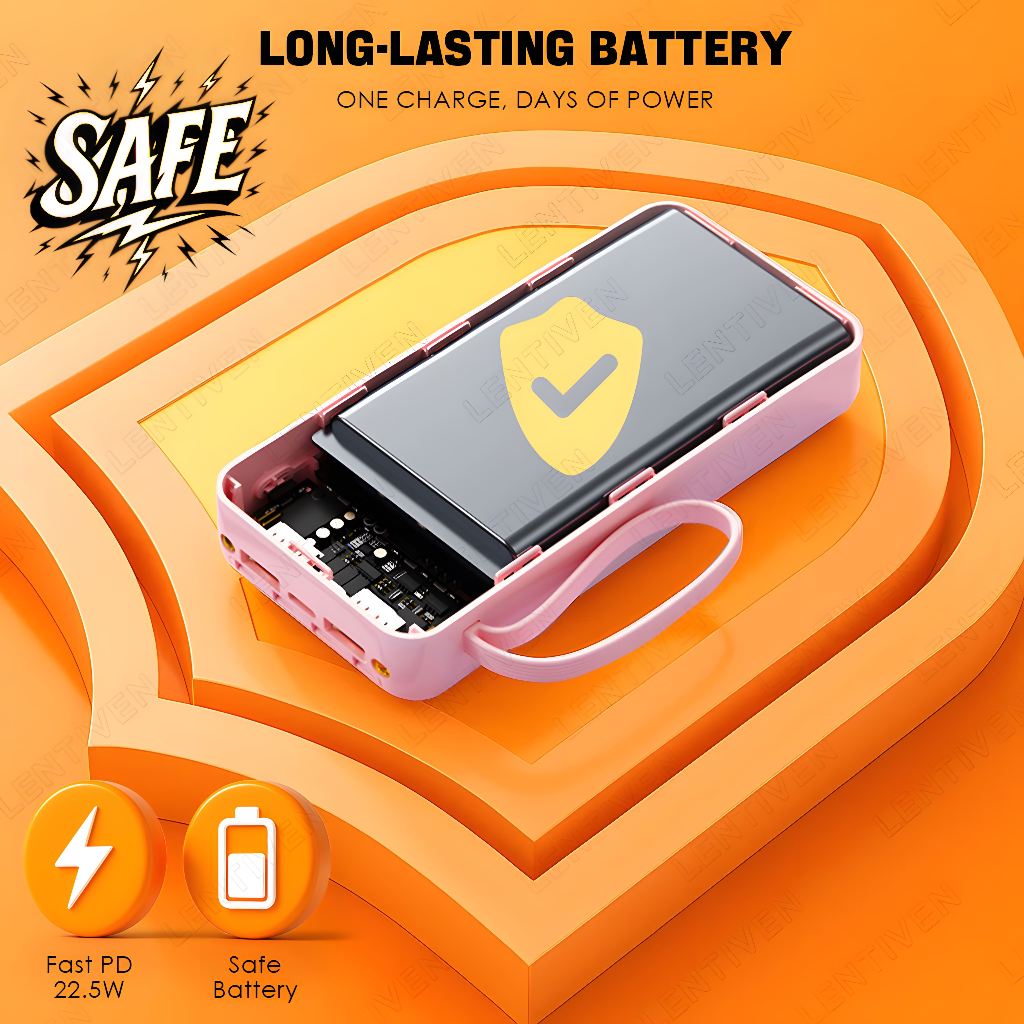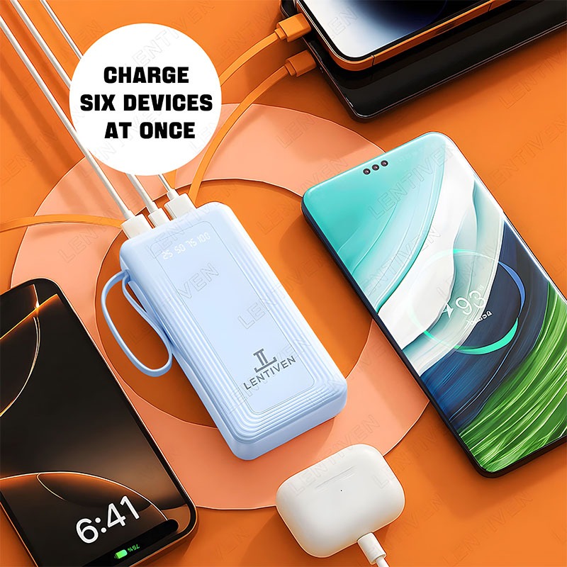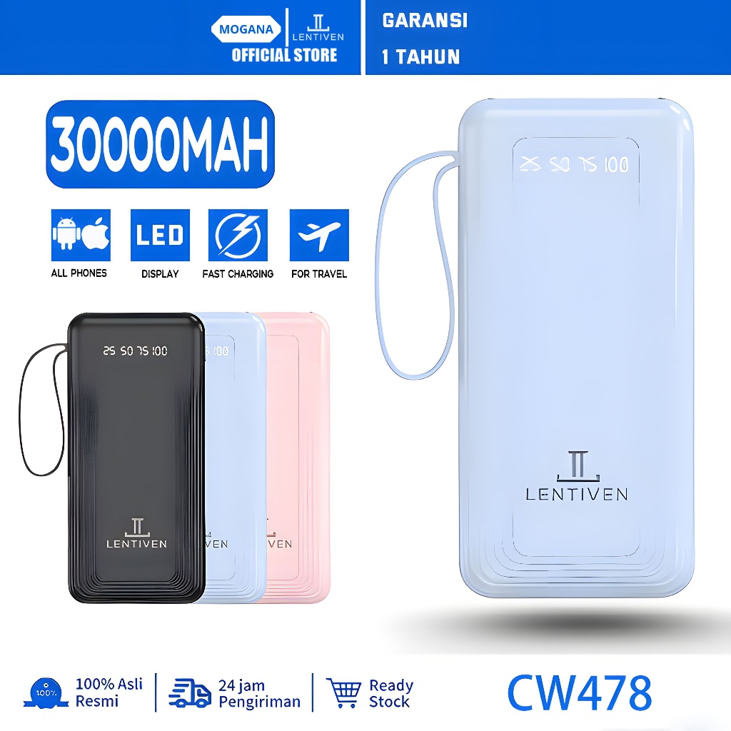 MOGANA LENTIVEN PowerBank 20000mAh Mini Fast Charging Digital Display With 4 Kabel Data For Iphone Android Garansi 1 Tah
