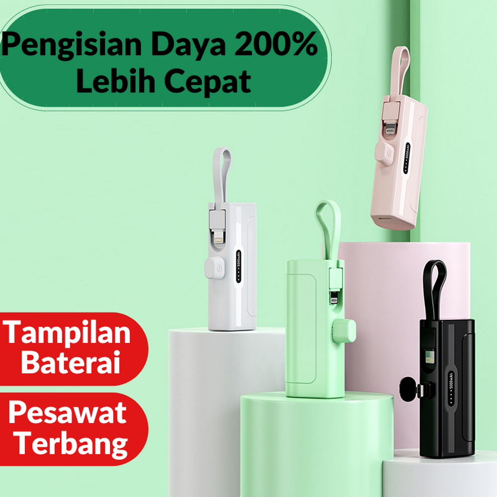 SKCBO Macaron Mini Powerbank 5000mAh Dengan Kabel Type-C / Xiaomi iPhone Samsung Ori