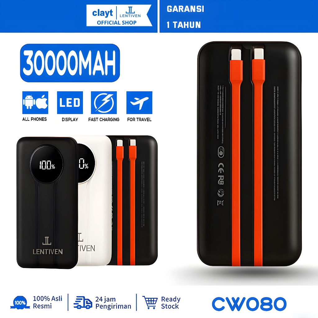 CLAYT LENTIVEN 10000mAh Powerbank Mini Fast Charging 1 KABEL Type C For Iphone/Android CW080