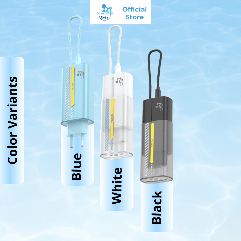 NANO CARE Powerbank 3IN1 with Wall Charger 5000mAh PD20W Mini Portable Travel