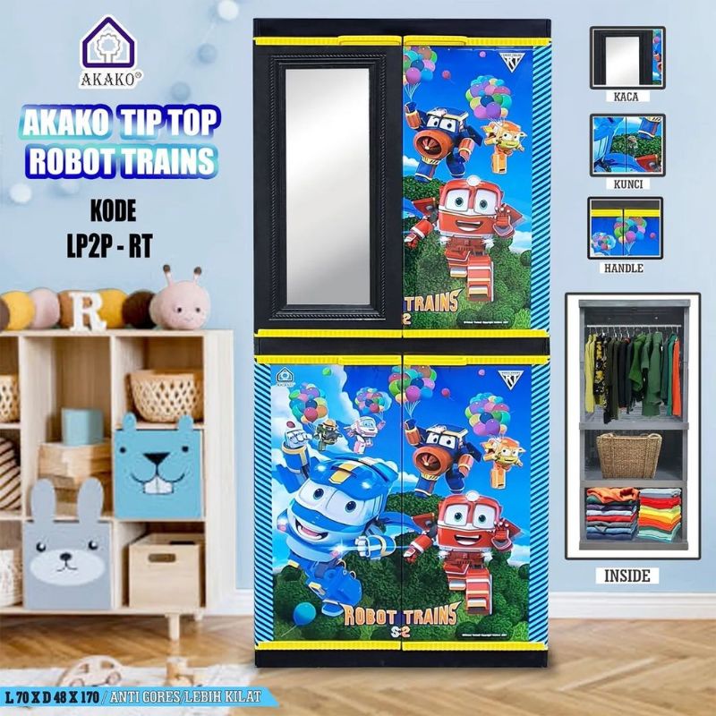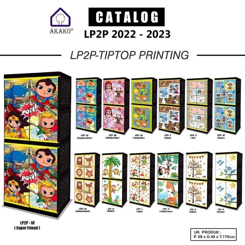 Lemari Pakaian Plastik Akako Tiptop JUMBO 2 Pintu Motif Gantung + Rak + Kaca + Kunci Printing License Lemari Karakter Kucing, Tupai, Robot Trains dll LP2P Tiptop Anti Rayap Kuat Tahan Lama