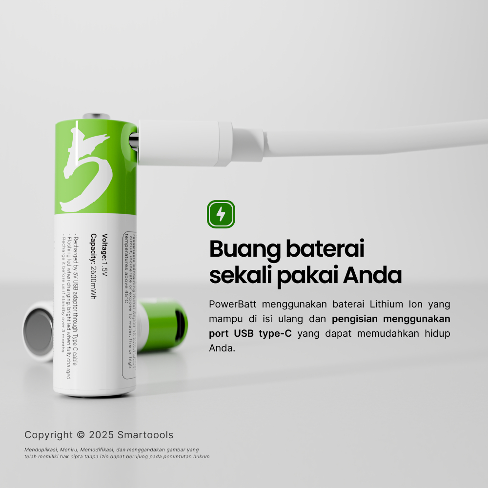 Baterai Cas Isi Ulang 2pcs Smartoools AA 1.5V Type-C USB Rechargeable Lithium Battery Charge