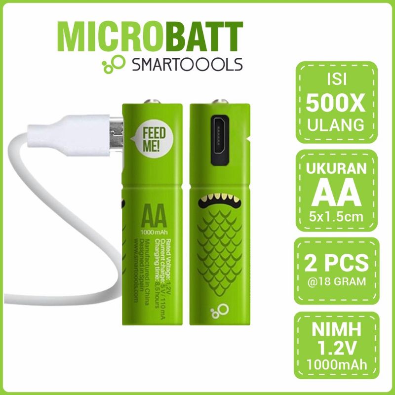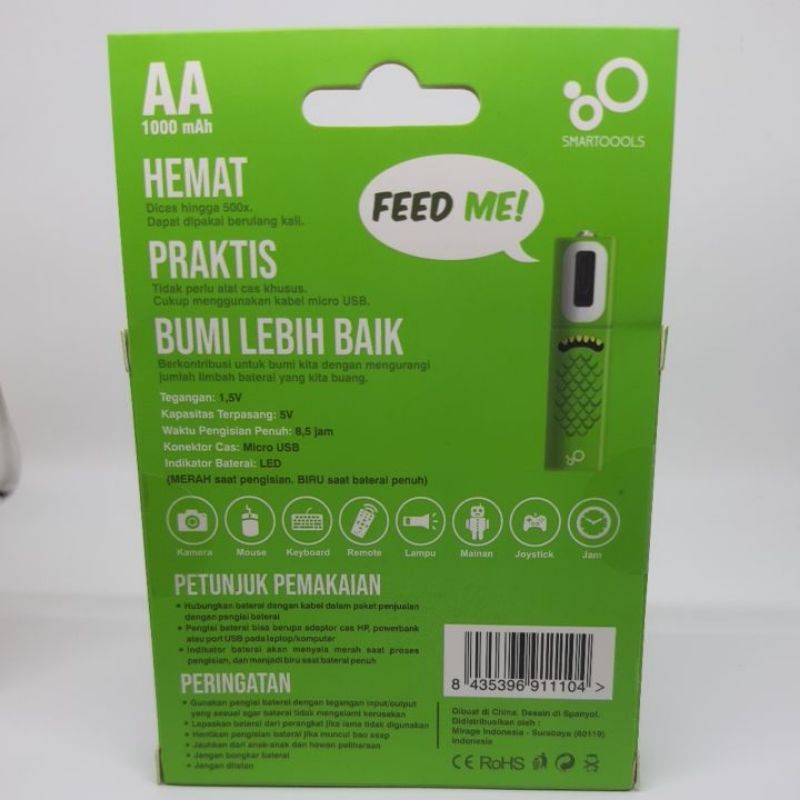 Isi 2buah. Smartoools Baterry AA, AAA USB rechargeable. Baterai isi ulang smartools