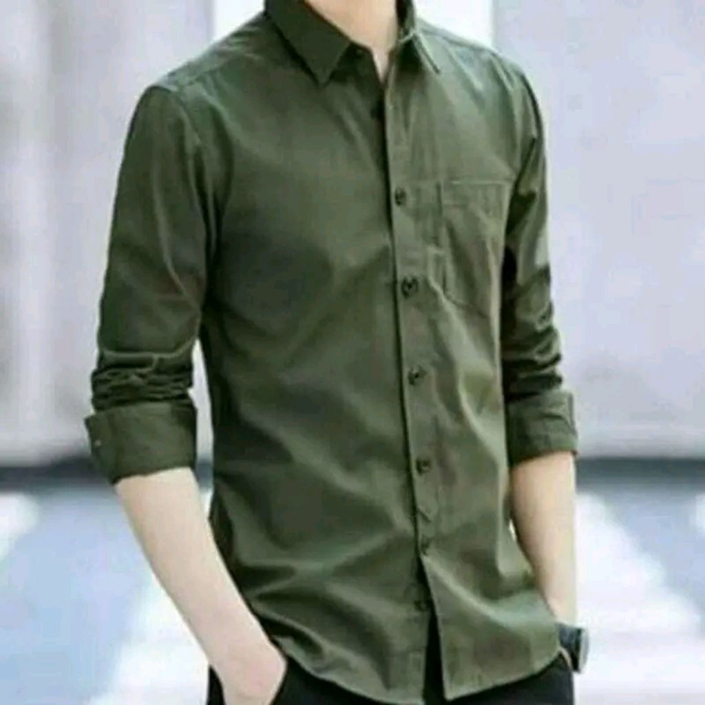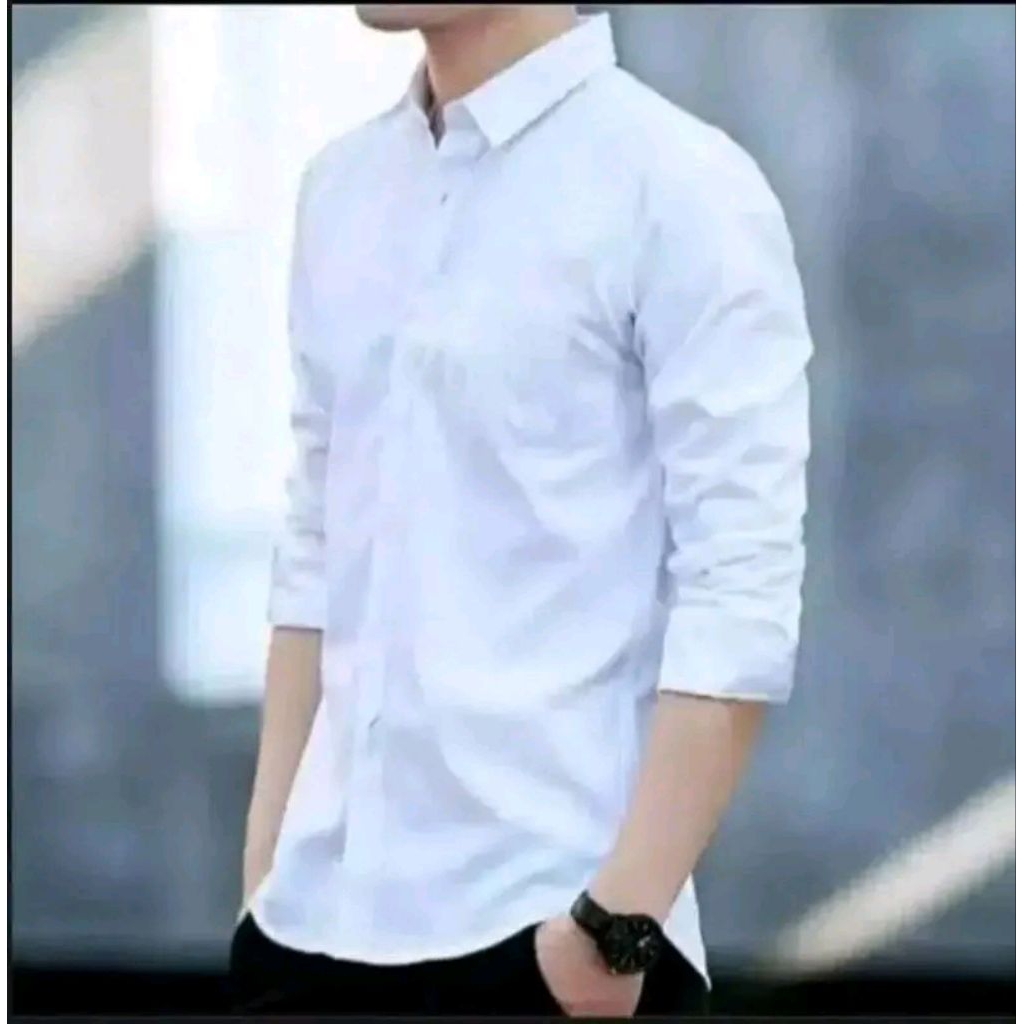 Kemeja Panjang Pria Polos Terbaru Kasual Formal Putih Hitam Biru - Hem Pria Lengan Panjang