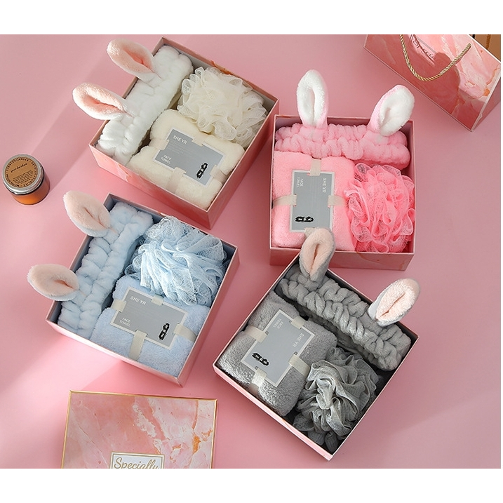 ETFELICEL Towel Headband Set/Handuk Wajah Muka Ban Halus Hadiah Souvenir Pernikahan Hampers Kado