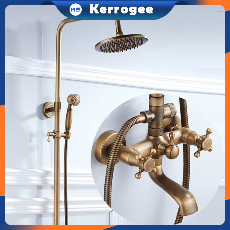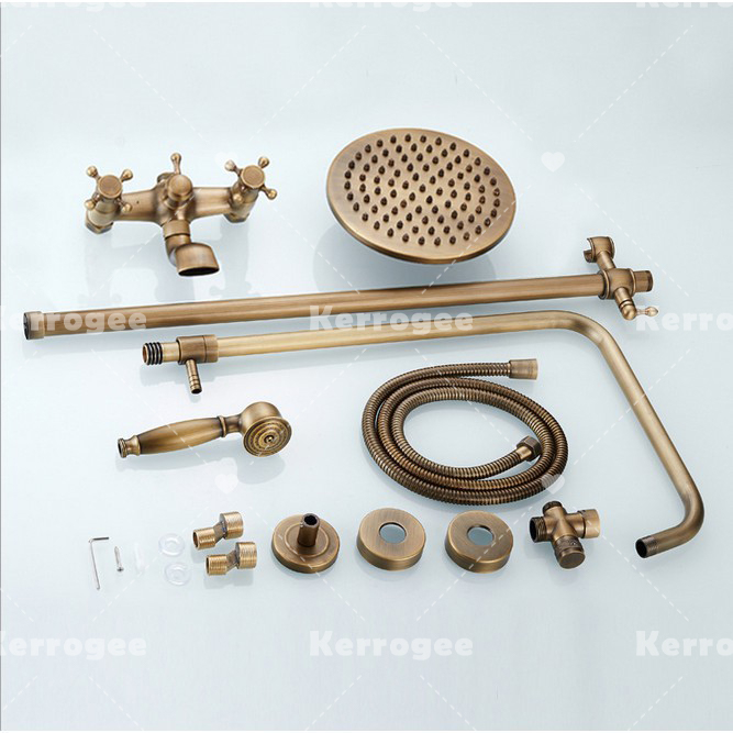 Tembaga Antik Shower Kamar Mandi Set head shower kamar mandi Kelas atas shower tiang set Tembaga Kepala Antik Bahan Warna Perunggu Dengan Faucet Sprayer Faucet Panas Dan Dingin KELL