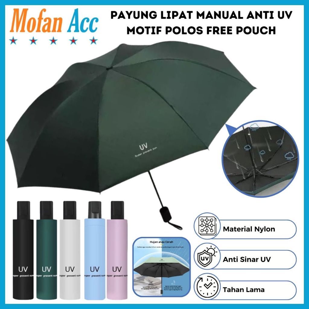 Payung Lipat los Manual Anti UV / Umbrella Korea Style Buka Tutup Manual Tebal Anti Hujan - Mofan