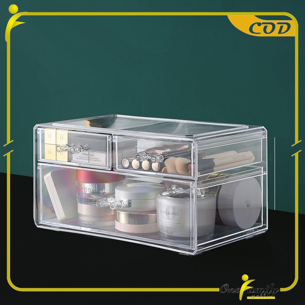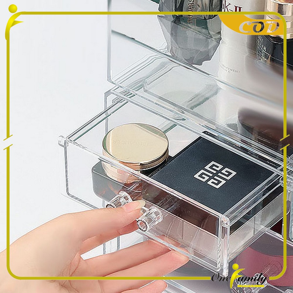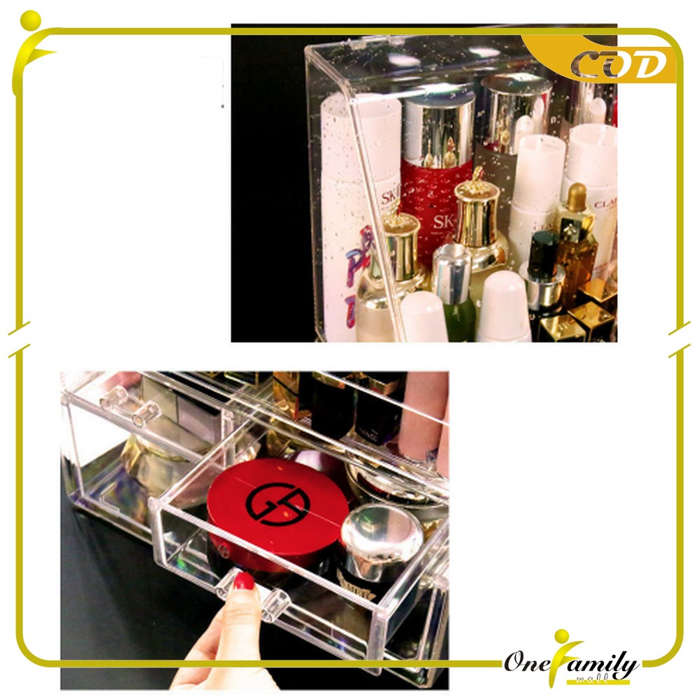 ONE-K133 Rak Kosmetik Acrylic Transparan Dengan Penutup Anti Debu Storage Box / Tempat Penyimpanan Laci Rak Make Up Skincare Organizer Laci Multifungsi